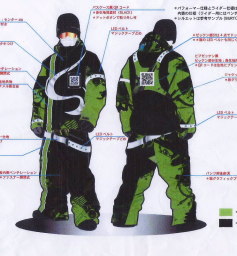 | ■某カンパニーのイベントウェア 同デザインで パーフォーマンスウェア(中綿無し)とボードウェア(中綿入り)を制作 |